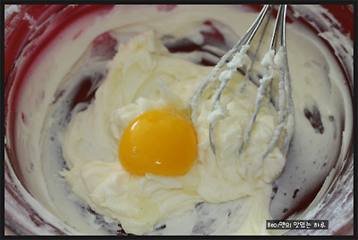 2. 계란노른자를 넣고 휘핑해 주세요~