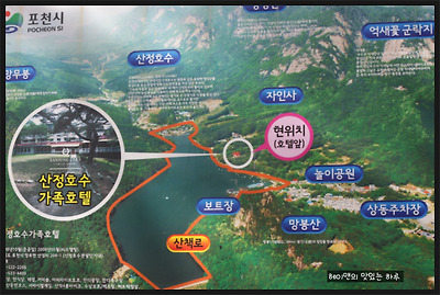 산속길이 굽이굽이 돌아서 들어가면 나타나는 산정호수엔~