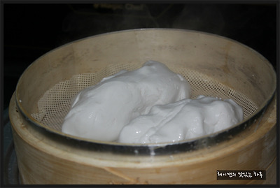 4. 김이 올라오는 찜통에 넣고 뚜껑을 덮은 후 20분 찌고 불을끈 후 5분 뜸을 들여주세요~