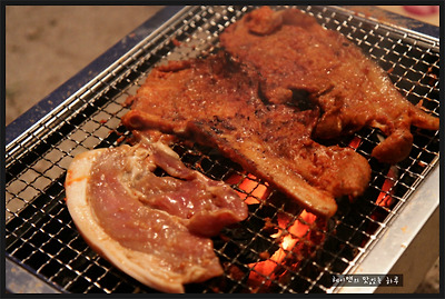 집에서 미리 양념해 온 고추장양념과 된장양념의 흑돼지 입니다.. ㅎ