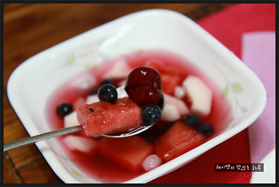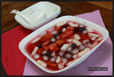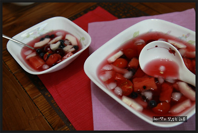 하지만 뭐니뭐니해도~~ 전 오미자로 맛을 낸 화채가 최고더라구요~ ㅎㅎ
