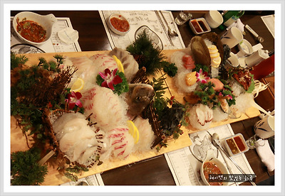물회와 낙지, 그리고 등갈비와 롤초밥, 생선구이찜, 새우와 고동까지