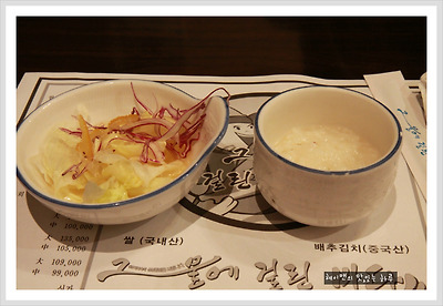 먼저 상큼한 유자소스의 샐러드와 죽이 나옵니다.