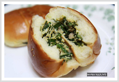 이 부추빵은 담백한 야채빵같은 느낌인데