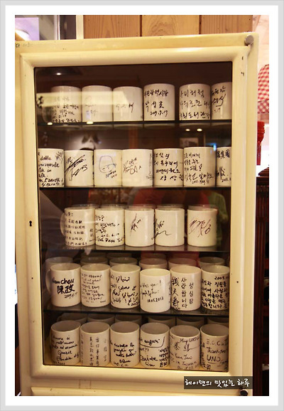 벽 한쪽에 유명인사들 사인을 받은 컵들도 전시되어 있네요~