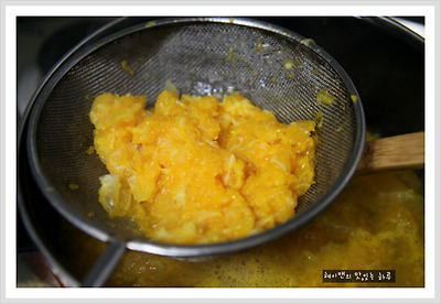 이렇게 끓인 귤은 체에 받쳐 건더기는 귤잼을 만들어서 먹고요~