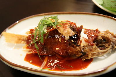 우럭을 통채로 튀겨서 양념을 올려 나오는 요리와~