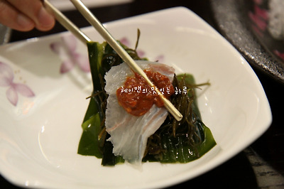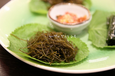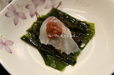 회를 먹을때 미역과 톳, 꼬시래기를 올리고