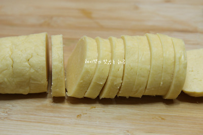 9. 휴지시킨 반죽을 꺼내서 1cm정도 두께로 썰어주세요~