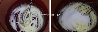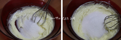 6. 실온에 놔둔 버터는 휘핑을 한 후 설탕을 넣고 휘핑해주세요~