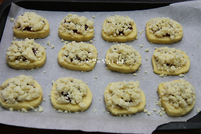 11. 자두잼위에 소보로반죽을 듬뿍 올려주세요~