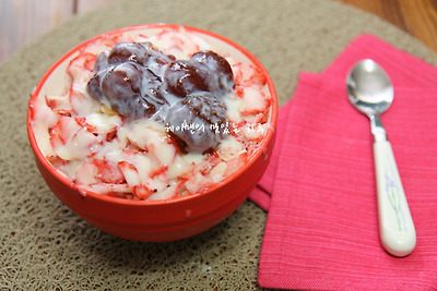우유얼음, 냉동딸기, 연유, 딸기콤포트