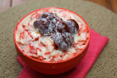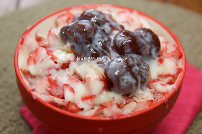 팥도 안들어가고~ 딸기와 우유얼음만 듬뿍 들어갔지만