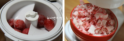 (우유얼음과 냉동딸기를 번갈아가며 갈아주시면 더욱 맛있게 먹을수 있답니다. ^^)