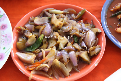 위의 요리는 양파와 소라살을 넣고 볶은 요리같았어요~