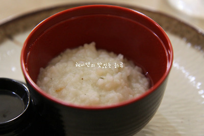 개인접시위에 죽이 한그릇이 놓여있어요~