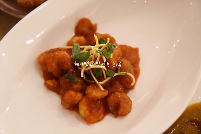이건 새우를 튀겨서 칠리소스에 버무려 놓은 거예요~