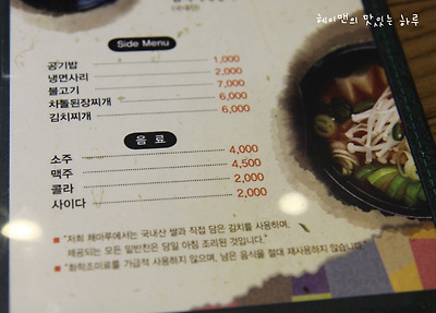 제공되는 모든 밑반찬은 당일 아침 조리된 것입니다.