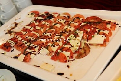 바질소스와 발사믹소스가 뿌려진 토마토카프리제도 있네요~