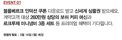 또 쿠폰만 다운로드 받기만 해도 응모가 되는 이벤트를 열었다고 해서 소개해 드립니다.