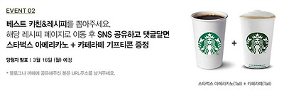 스타벅스 아메리카노와 카페라떼 기프티콘 증정