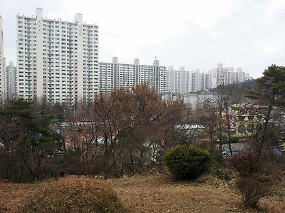 아파트숲이 내려다 보이는 잘산봉 중턱.