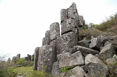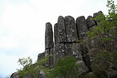 풍화작용에 의해 주상절리 아래부분이 떨어져 나간 곳은 위태롭게 걸려있습니다.
