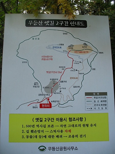 무등산 옛길 2구간은 원효사지구에서 서석대까지 4.12km입니다.
