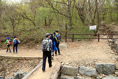 새인봉 삼거리에서 오른쪽 약사사 쪽으로 하산하지 않고 좌측 동적골쪽으로 하산합니다.
