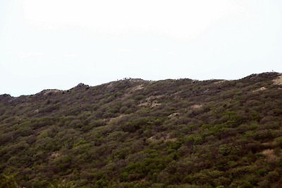 백마능선을 따라 올라오는 사람들이 마치 개미떼가 기어오는 것 같습니다.