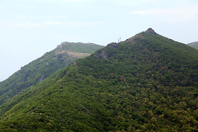 산 전체가 둥그스름해 마치 종을 거꾸러 세워놓은 것 같습니다.