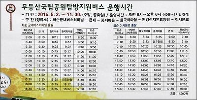 그러한 국립공원 무등산을 돌아보는 버스가 바로 무등산 순환버스로 2011년에 첫 운행을 시작한 뒤 올해로 벌써 4년째가 되었습니다.