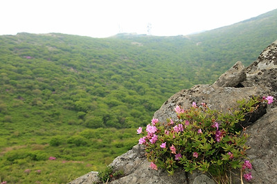 바위틈의 자그마한 철쭉이 훨씬 더 아름답게 보입니다.