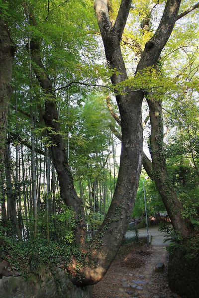 나무위로 다른 나무가 올라타듯이 서로 몸을 맞대고 있다고 해서 '사랑나무'라 부르는 느티나무이다.