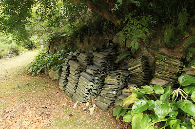 오래전에 수선해서 바꿨을 기와도 한쪽에 보물처럼 모여 있다.