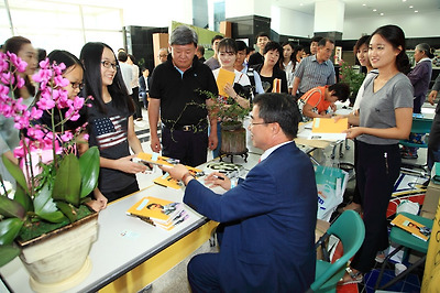 휴일임에도 불구하고 전시관은 저자의 사인을 받고자 하는 사람들이 700여 명이나 몰렸습니다.