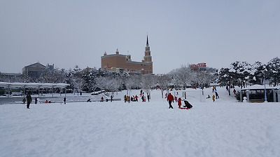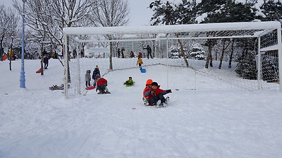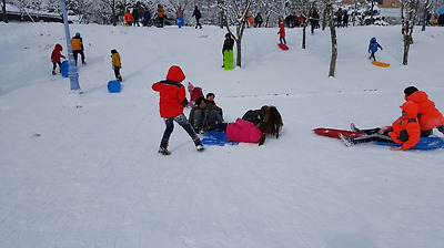 월요일 하루 휴교이므로 꼭 이곳에서 눈썰매를 타기 바란다..