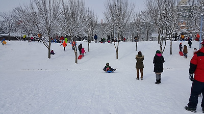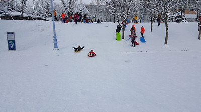 곳곳이 눈썰매장으로 변했다.