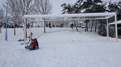 다행히 운동장도 20cm이상 눈이 쌓여 푹신하다보니 다치는 아이들은 없다.