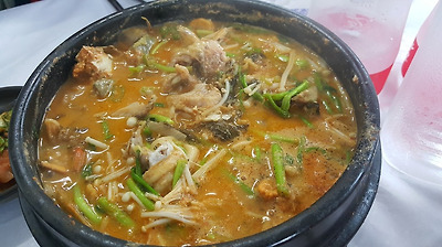 참게메기탕 중(中)짜리 하나로 성인 4명이 충분하더라는...