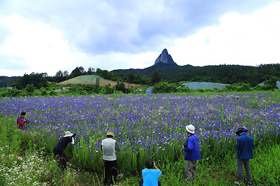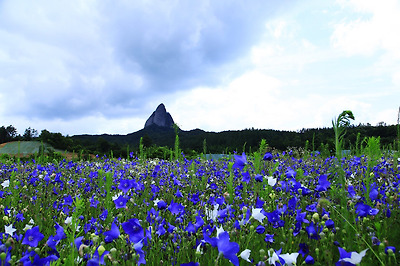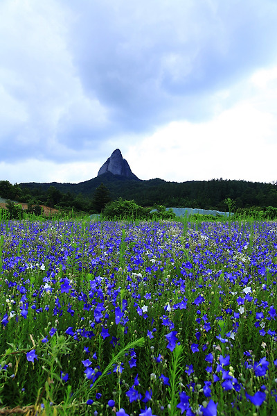 진안농업기술센터 인근 도라지꽃 밭에서 본 마이산