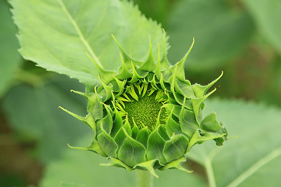 아직 잎이 벌어지지 않은 해바라기가 있는가 하면...