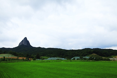 농촌 풍경과 더불어 고원에 우뚝 솟은 마이산이 신비롭기만 하다.
