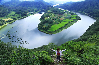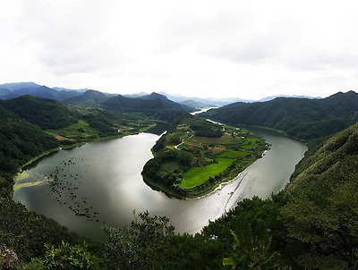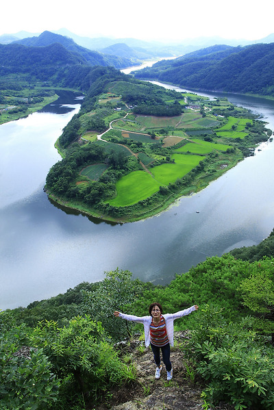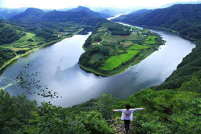 나뭇가지에 걸려 안보이는 곳이 바로 한반도 지형이다.