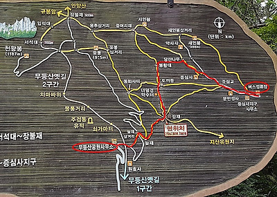 (원효사 지구~늦재~바람재~토끼등~봉황대~천제단~당산나무~증심사지구)