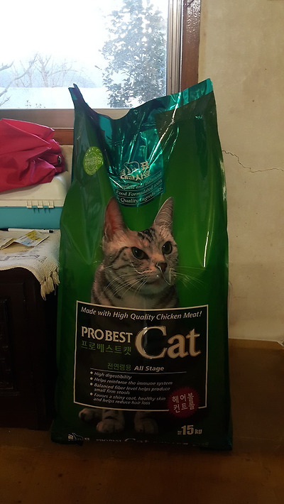 고양이 사료 15kg 한 포대를 사가지고 갔다.