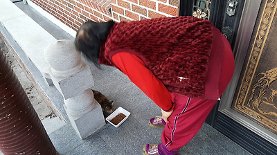 내가 잡을 라 치면 도망가고 얼씬도 않다가 어머니가 먹이를 주면 와서 쓰다듬어도 먹기에 바쁘다.
