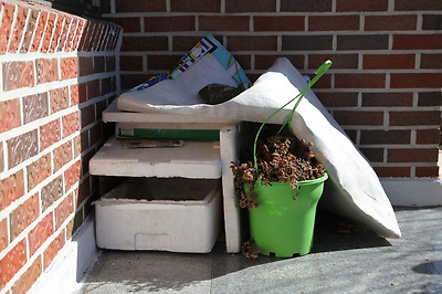 집이 남향이라 하루 종일 햇볕이 잘 드는 곳에 스티로폼으로 집을 만들고
