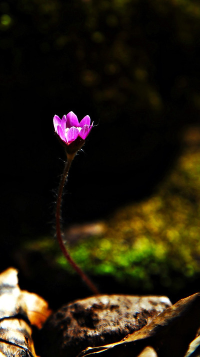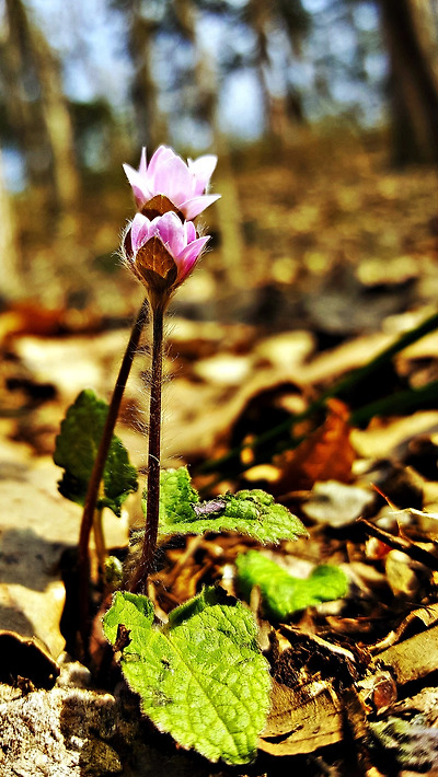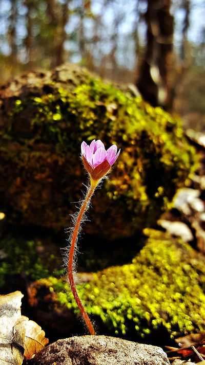 스마트폰이 움직이면 안되니 노루귀 앞에 돌을 쌓아 스마트폰을 고정해 놓고