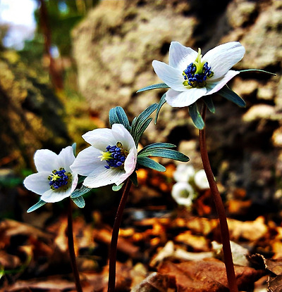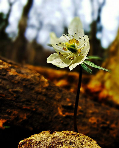 돌섶에 피어난 한떨기 변산바람꽃.